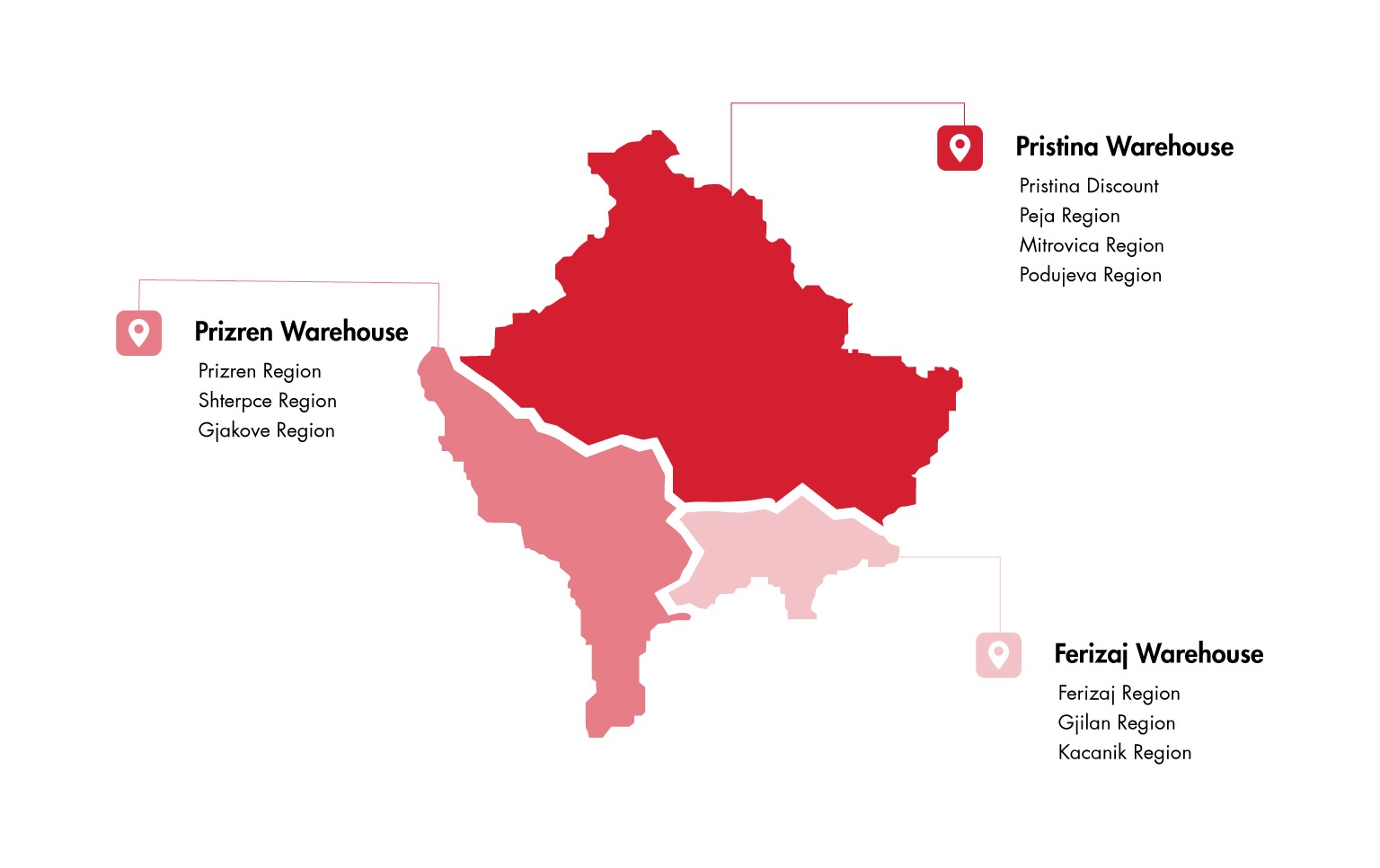 In addition to existing 3 regional warehouses, two new warehouses will be opened, in attempt to strengthen the presence and mobility in the eastern and western territory of Kosovo